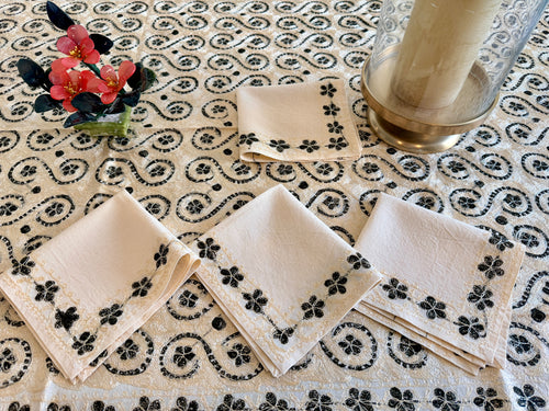 Table Cover: 156 x 78 inches Approx’. Aghabani Oriental for Rectangle Tables, Beige background with Beige & Black Silk Embroidery