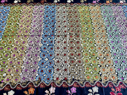 Table Cover: 117 x 69 inches Approx'. Aghabani Oriental for Rectangle Tables, Black background with Multiple colors of Silk Embroidery