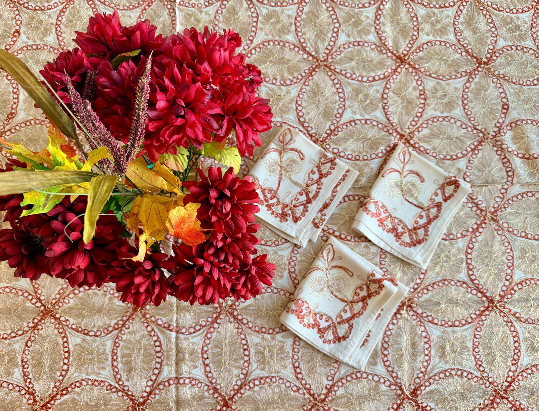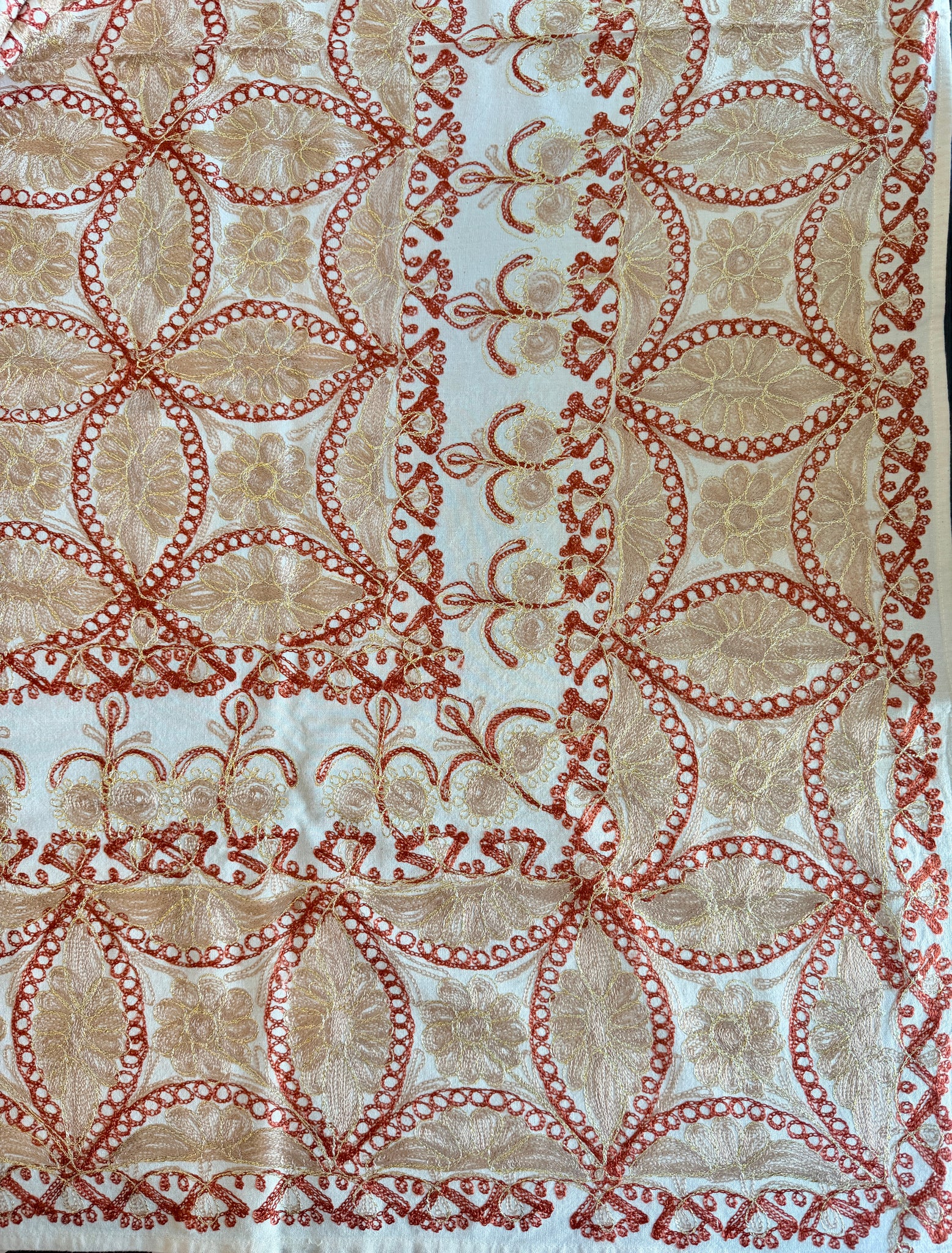 Beige background with Brick Red and Champage Beige Silk Embroiderment
